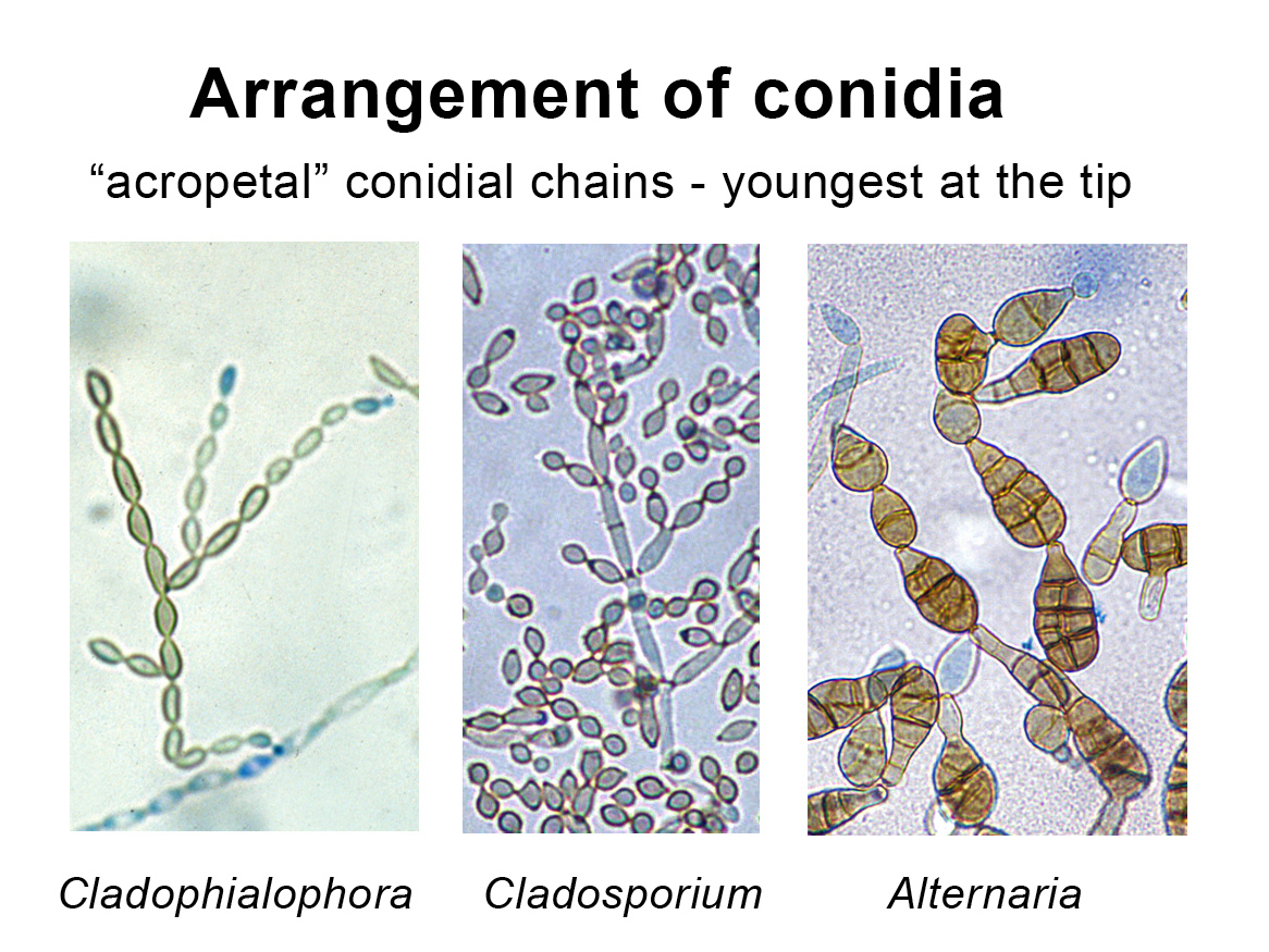 - Acropetal - catenulate where the youngest conidium at the tip of the chain.