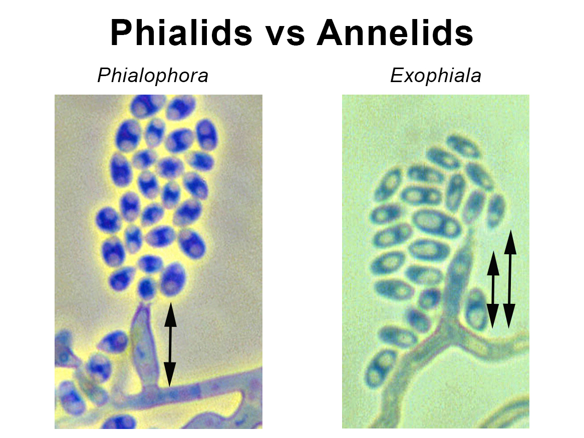 - Phialide (specialised conidiogenous cells that produces conidia in basipetal succession without increasing in length)