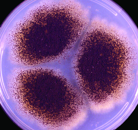 On Czapek Dox agar, colonies are typically plain green in colour with dark red-brown cleistothecia developing within and upon the conidial layer. Reverse may be olive to drab-grey or purple-brown. Conidial heads are short, columnar (up to 70 x 30 µm in diameter) and biseriate. Conidiophore stipes are usually short, brownish and smooth-walled. Conidia are globose (3-3.5 µm in diameter) and rough-walled.Key features: