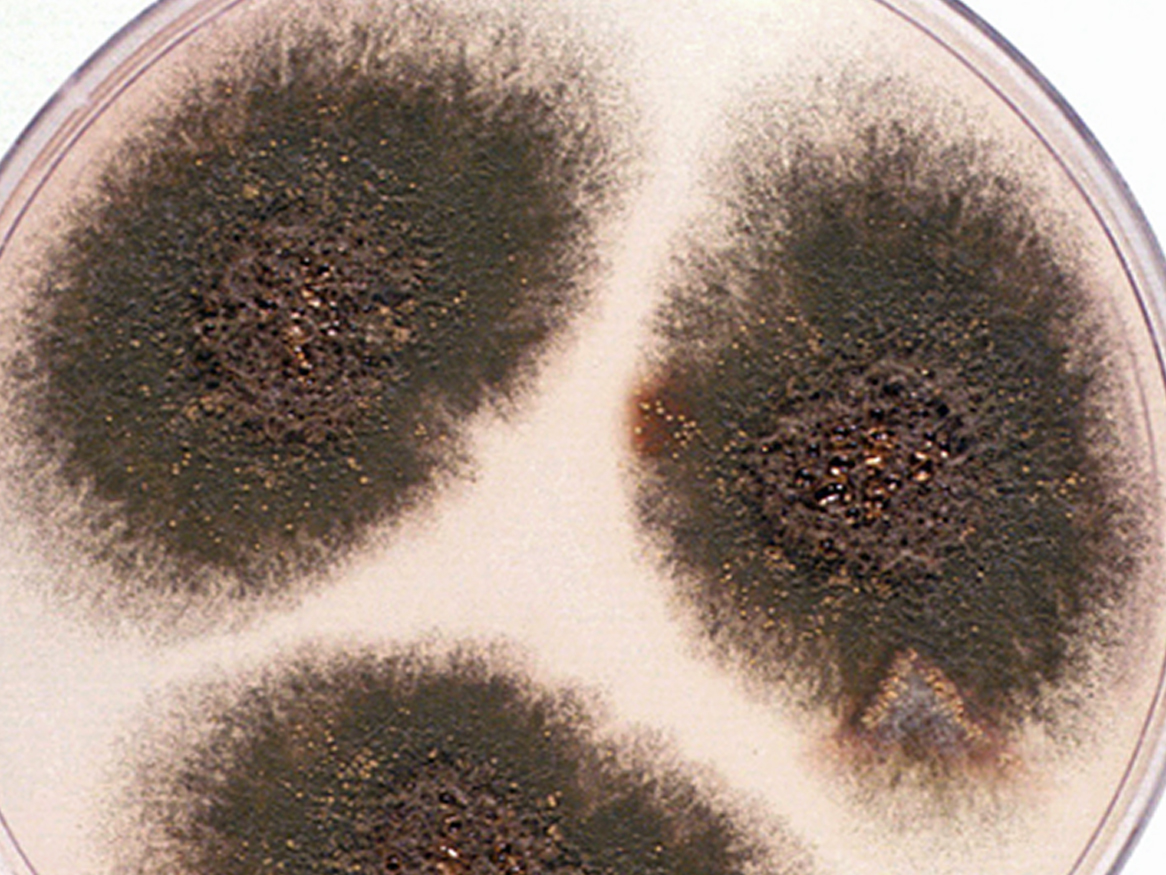 Aspergillus niger is one of the most common and easily identifiable species of the genus Aspergillus, with its white to yellow mycelial culture surface later bearing black conidia. This species is very commonly found in aspergillomas and is the most frequently encountered agent of otomycosis. It is also a common laboratory contaminant.