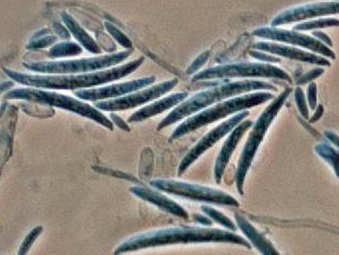 Colonies growing slowly; surface usually orange to deep apricot due to confluent conidial slime; aerial mycelium sometimes floccose and whitish. Conidiophores loosely branched, with short, often swollen phialides, 10-18 x 4-5 μm. Macroconidia strongly curved and pointed at the apex, mostly one-(some up to three)-septate, 5-25 (-32) x 1.5-4.2 μm. Microconidia absent. Chlamydospores mostly intercalary, exceptionally terminal, spherical to ovoidal, 6-12 μm diam, smooth-walled, single or in chains.Antifungal susceptibility: Fusarium dimerum complex (Australian national data); MIC µg/mL No ≤0.03 0.06 0.125 0.25 0.5 1 2 4 8 16 ≥32 AmB 42 1 7 10 11 13 ISAV 8 1 3 4 VORI 41 6 12 15 6 2 POSA 39 1 5 8 25 ITRA 42 2 2 38 -