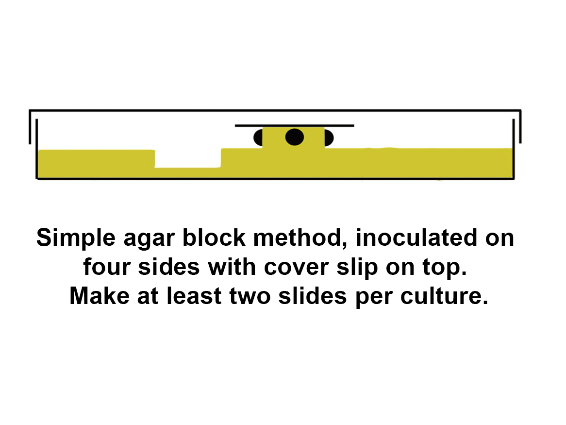 Inoculate the four sides of the agar block with spores or mycelial fragments of the fungus to be grown.