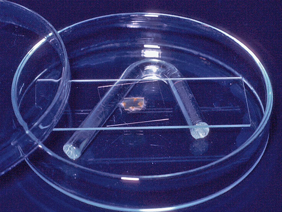 Using a sterile blade cut out an agar block (7 x 7 mm) small enough to fit under a coverslip.